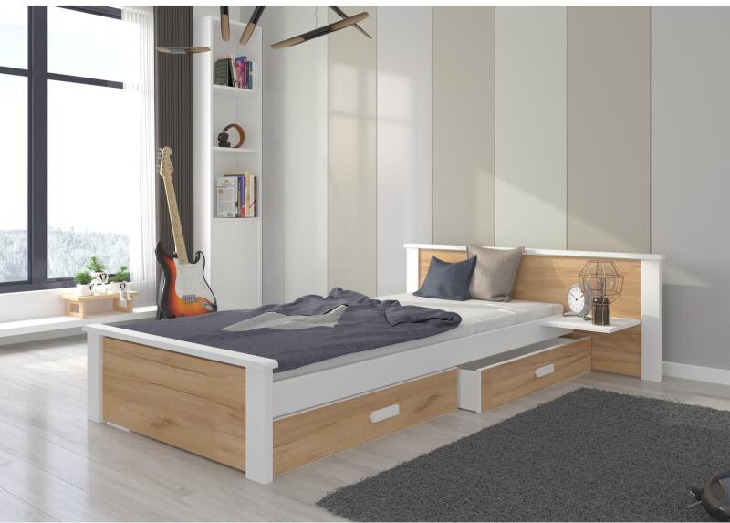 ADRK Ágy matraccal ALDEX SHELF 180x80, Fehér, Tölgy arany