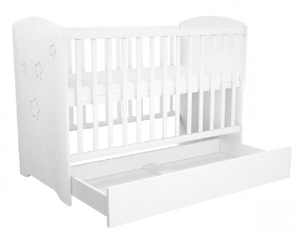 TIMBA kiságy Félix zárt végű ágyneműtartós fehér-csillagos 60×120